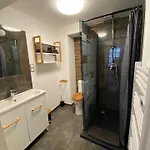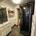 Gite La Maison Rouge Bethune comprend une salle de bains avec une toilette séparée et une douche. Des articles de toilette gratuits et des serviettes sont fournis pour améliorer votre confort.